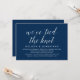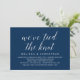Vacker elegant marinblå script, Bröllopsannonsering för de som rymmer, Bröllopskort (Vi har bundit knuten). Detta är perfekt för din bröllopsfest och efterfirande. Lägg till dina detaljer i matchande teckensnitt.
