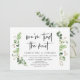 Modern svart skrift, sommarträdgård med grönska och löv tema, bröllopsinbjudan för de som rymmer (Vi har bundit knuten). Den är perfekt för er mottagning efter bröllopet / efterbröllopsfirande. Lägg till era detaljer i matchande svart teckensnitt.