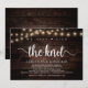 Vi har bundit knuten, Bröllopsannonsering / Bröllopskort, i rustik lantlig trädesign med strängljus. Perfekt för er bröllopsfest och efterbröllopsfirande. Lägg till era detaljer i matchande typsnitt.
