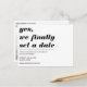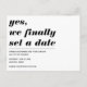 Var redo att svara på den huvudfråga som par får fråga gång att förlova: Har du fastställt ett datum?! Du kan säga ja på ett lätt humor-sätt genom att spara datumet med fet typografi i titeln och ett alternativ för att lägga till ett foto. Du kan även ta bort den rad som skiljer titel- och datuminformationen från bröllop genom att helt enkelt ta bort den.
