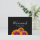 Vi har flyttat blommig flyttningsannons kort, med en boho tusensköna design på svart bakgrund. Med anpassningsbar bokstavsstil kan du lägga till din egen information. Perfekt för att låta nära och kära veta om ditt nya hem.