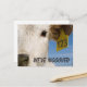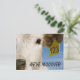 Det här roliga vykortet innehåller ett foto av en söt kalv med en numrerad märkre och anpassadet "Vi har MOOVED. Fotografi skapat av prisbelönt fotograf Maria Jeffs.