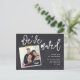 Modern skriptkalligrafi läser VI HAR FLYTTAT över din favoritfamiljs ögonblicksbild eller bild av det nya huset som är kopplat med utskrivet guld-band på ett kriterum på detta söta, enkla flytta-annonskort. Ett enkelt byte av anpassade om adress-varningen gör det snabbt och snyggt att nyheterna om ert nya hem!