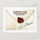 Vi har Flyttat vykort för Watercolor Mail Flytta Announcement. Med anpassadets kalligrafiktext i brunt burgundi bläck för ditt nya namn och adress, och handskriven text som visas i bläck blå färg "vi har flyttat" på en vattenfärgsfärgad hand som målar brev med vax (med anpassadets monogram först) på vattenfärgen strukturens pappra framsida. Baksidan innehåller anpassade i handskriven teckensnittstyp och blek grått linjer för att skriva adress på vitt. Du kan anpassa typsnitt, färg, text och bilder. Vi inbjudan besöker vår Zazzle-butik, Austen & Grace, för matchande produkter med mera. Kontakta oss om du behöver hjälp.