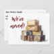 dina spännande nyheter i stil med detta vackert designade vykort "Vi har flyttat". Med en vit vattenfärgsillustration av en nystaplad torn i flytta-lådor utstrålar den här designen charm och värme. Varje låda är försedd med subtila, handmålade detaljer, från ömtåliga bandremsor till lekfullt "skör" frimärke, skapande en inbjudan och personlig beröring. Rubriken "Vi har flyttat!" är elegant skriven i fet röd, så att ditt budskap visas snabbt. Med gott om utrymme på baksidan för att inkludera din nya adress och hjärtliga anteckning, är vykortet ett perfekt för behållans vänner och familj på baksidan. Idealisk för en modern, men ändå personlig beröring för att markera din nya början!