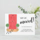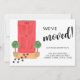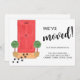 Är du och din hund hemma? Det här flytta-annonskortet för roligt har en röd dörr- och krukanläggning med doggy tassar. Det står "Vi har flyttat" i snyggtens manusskrivstil. Du kan ändra numret på dörren till ditt nya nummer. Enkelt anpassade. Ursprunglig vattenfärg © Michele Davies.