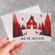 Meddela din nya adress med detta mysiga skandinaviskt inspirerade "Vi har flyttat"-kort, med ett charmigt rött hus, renar och festliga nordiska skogselement. Perfekt för högtidssäsongen, är denna platta postkortdesign lätt att skicka och vackert tematiserad för vintern. Anpassa den med din familjs namn och nya adress för att sprida nyheten med stil.