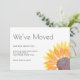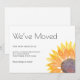 Det här flytta-annonskortet är dekorerat med en gult vattenfärgad solrosolros och snyggt typografi. Enkelt anpassade. Ursprunglig vattenfärg © Michele Davies.