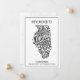 Skicka din familj och dina vänner det här boho Illinois statliga nya adress flytta-annonseringskortet. Den här moderna designen är en svart och vit illustration av Illinois-tillståndet som accentueras av en blommigt mandala. Kortets överkant lyder "Vi har flyttat till:" Under lägesbilden är ditt namn och nytt adress att anpassa. Baksidan av vykortet har ett meddelande och namnteckning att du även ska anpassa. Designad av Susan Coffey.