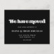 Flyttningsanmälningskort: låt dina vänner och familj veta om din nya adress med detta enkla och helt anpassningsbara vykort. Välj din favoritfärg för texten och bakgrunden.