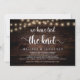 Vi har gift oss, Bröllopsannonsering / Bröllopskort, i rustik lantlig trä, strängljusdesign. Detta är perfekt för din bröllopsfest och efterbröllopsfirande. Lägg till dina detaljer i matchande typsnitt / bokstäver.