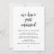 Vacker modern casual skript, i svart skrift, Bröllopsannonsering för de som rymmer, Bröllopskort (Vi har just gift oss). Detta är perfekt för din bröllopsfest och efterföljande firande. Lägg till dina detaljer i matchande teckensnitt / bokstäver.