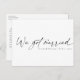 Ett meddelande bara för att tillkännage de stora nyheterna: enkelhet talar högst. Med ett svart, formellt skript som skrivs varje bit elegant och som är modernt med ett serif-teckensnitt som kompletterar varje kurva. nyheterna med dina nära och kära med det här enkla men toppen-posterkortet för ditt meddelande i giftermål