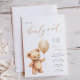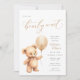 Fira en liten annons med den här charmerande babyduschinbjudan, med en söt nalle med vattenfärg som håller en ballong. Den här söta designen med gender och neutralt är perfekt för vilket babyduschtema som helst. Med delikat skript och elegant anger den en varm och inbjudande ton för firande. Anpassa med all händelseinformation, inklusive namn, datum, tid, plats och registerinformation.