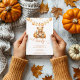 Vi kan bota könsuppehåll för nyfödda barn. Bebisduschen med spets i krukor med handmålad illustration av unge med pumpor. I texten står det: "Vi kan vänta tidigt!" Denna inbjudan är underbar för en könsneutral dusch i hösten.