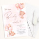 En rosa nalle kallade Baby Shower-inbjudan. Utformningen har brun elegant-typografi som lyder "vi kan vänta tidigt", på en rosa vattenfärgsbakgrund i stänk, med nallar som flyter bort med rosa ballonger.