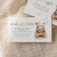 Detta inbjudningskort kan användas för att artigt be gästerna ta med böcker till bebisen istället för gratulationskort till din baby shower. Detta kort är det perfekta sättet att lägga till en speciell touch till din björn-tema shower. För matchande föremål, vänligen kolla in vår kollektion.