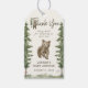 "Vi kan knappt vänta Baby Shower Tack Gåvor Taggar" är ett charmerande och genomtänkt sätt att uttrycka tacksamhet till dina gäster efter en baby shower. När du blickar på denna utsökta inbjudan förbereder du dig på att föras till en värld av ren förtrollning och under, där små skogsdjur leker bland träden, deras små tassar och näsor fångar det fläckiga ljuset som filtreras genom löven. Du kan nästan lukta den söta doften av tallbarr och vilda blommor och känna den mjuka brisen som rör sig genom grenarna. Dessa taggar är designade för att enkelt fästas på festerpresenter eller tackgåvor och lägger till en personlig touch som dina gäster säkert kommer att uppskatta. Varje tagg har utrymme på baksidan för att skriva ett hjärtligt meddelande eller helt enkelt förnamnen på de blivande föräldrarna och datumet för baby shower, vilket gör varje tackgåva till en minnesvärd souvenir. Dessa presenttaggar är tillverkade med omsorg och blandar nyckfullhet och tacksamhet, vilket säkerställer att de sista detaljerna på din baby shower