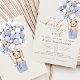 Vi kan knappt vänta! :) Den här lilla björnen väntar på den stora bebis-festen, sittande i en varmluftsballong byggd av blå, bruna och krämfärgade ballonger. Whimsical akvareller och modern typografi kompletterar designen. Anpassa denna söta Bebis Shower Inbjudan med era bebis shower-detaljer enkelt och snabbt, tryck på knappen för att anpassa det ytterligare, och formatera stil och placering av texten.