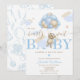 Vi kan knappt vänta Blå pojke babyfirande Inbjudningar