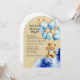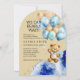 Bjud in nära och kära att fira din växande familj med denna söta ”We Can Bearly Wait” ( Vi kan knappt vänta ) bebis-fest inbjudan! Med en charmig handmålad teddybjörn omgiven av eleganta kungliga blå och gyllene abstrakta accenter och festliga gyllenbruna och blå ballonger är denna design perfekt för en klassisk men ändå lekfull fest.