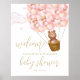Söt "vi kan knappt vänta" teddybjörn-tema rosa flicka bebisfest välkomstskylt. Designad av Thisisnotme