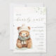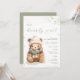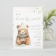 Den här designen har en söt liten nalle på en subtil beige med texturerad och spräcklig bakgrund. Färg palett: grönt, beige och elfenben. Den här "Vi kan vänta tidigt"-inbjudan till babyduschen är perfekt för vintertid.