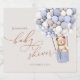 Vi kan vänta! :) Denna lilla björn väntar på den stora baby party, sitta i en luftballong som byggs med ballonger av blått, silver och grädde. Viktiga vattenfärger och modern typografi kompletterar utformningen. Anpassa det här söta Bear Baby Shower-objektet med information om babyduschen enkelt och snabbt, tryck på anpassningsknappen för att ordna om det ytterligare och formatera stil och placera texten.
