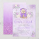 Vi kan vänta tidigt på inbjudan till babydusch i blommigt nalle