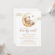 Inbjudan till Barly Wait Måne Bear Baby Shower ger en söt illustration av en nalle som vilar på en gult måne, med en elegant med skripttypsbehandling. Anpassa den med din händelseinformation. En vacker inbjudan, perfekt för ditt evenemang!
