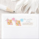Vi kan vänta på att Gender Reveal Party Return-adressetikett Gender visar party Return Address-etiketten med en vattenfärgad etikett som illustrerar rosa och blått baby-björn med ballonger och båge med texten "Customized namn och Customized Adress.