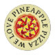 Vi kärlek klumpar pizzaba lustigt runt glasskärskivor. Utformningen av ananas pizza älskare.