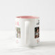 Cute Vi kärlek du Grandma Flowers 5 Photos Keepie Two-Tone Coffee Mugg. Handritade blommor i vackra vår färg och fem bilder av barnbarn. Texten "Vi kärlekar dig mormor är i modernt och trendig svart skript och rosa fet typsnitt. Skapa din egen personlig för en mormor för Mor dag, födelsedag eller jul och lägg till namn och foton.