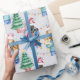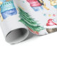 Den här söta pappra inslagningen är perfekt till vilken julklapp som helst. En lätt grått-bakgrund med barn klädda i jultomter med olika valpar och Julgranar överallt.