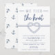 Denna nautiskt tema bröllopsannonsering och mottagningsinbjudan har en hjärtformad repdesign och ett ankare mönster för att låta vänner och familj veta om ert bröllop och inbjuda dem till en mottagning för att fira!
