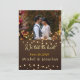 Dela din stora nyhet med detta eleganta "Vi Knöt Knuten"-tillkännagivande. Med en varm, chokladbrun bakgrund och glödande lyktor, ramar denna design perfekt in ditt favoritbröllopsfoto. Perfekt för höst- eller vinterbröllop, eller par som söker en rustik, magisk estetik. All text och fotot är helt anpassningsbara för att passa din speciella dag.