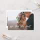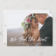 Det här enkla och stilrena vigselkortet för bröllop på rådhus eller utomlands presenterar ett personligt bröllopsfoto på framsidan, med orden "vi har gift oss" i trendig, vit handskriven stil. Baksidan av kortet har plats för ytterligare ett foto, samt utrymme för att antingen utveckla detaljerna kring ert bröllop eller ge information om en efterfest eller mottagning. En modern minimalistisk design som är det perfekta sättet att låta vänner och familj veta att ni är gifta!