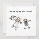 En bedårande brud och brudgum i form av pinnfigurer med stora leenden och texten Vi knyter knuten på T-shirts, hoodies, tanktoppar, väskor, muggar, kort, klistermärken, souvenirer, nyckelringar, kuddar och massor av andra föremål!