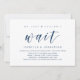 Modern marinblå skript-tema, bröllopsinbjudan (Vi kunde bara inte vänta). Den är perfekt för din bröllopsfest / efterbröllopsfirande. Lägg till dina detaljer i matchande svart teckensnitt.