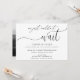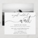 Nygifta bröllopsannonsen fördubblas också som en bröllopsfest inbjudan. Dubbelsidig mottagning inbjudan har texten "Vi kunde helt enkelt inte vänta" med text som tillkännager det nygifta parets äktenskap och inbjuder gästerna till en avslappnad bröllopsfest. Anpassa med ditt horisontella foto på baksidan eller lämna tomt om inget foto önskas.