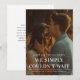 En välkommen bröllopsannonsering med Vi kunde helt enkelt inte vänta rubrik. Ett bra sätt att låta nära och kära veta att ni har gift er. Baksidan tillåter ett personligt meddelande till vänner och familj eller kan tas bort om så önskas.