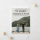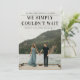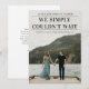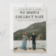 Ett bröllops tillkännagivande i tid med Vi kunde helt enkelt inte vänta rubrik. Ett bra sätt att låta nära och kära veta att ni har gift er. Baksidan tillåter ett personligt meddelande till vänner och familj eller kan tas bort om så önskas. Klicka på redigera för att anpassa.