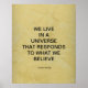 Vi lever i ett universum som motsvarar det vi tror på. Detta citat från andlig som poster bygger på lärdomarna i lagen om Attraktion och kvantfysik. Citat och teckningar av Corbin Henry.