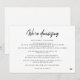 Nedskalad bröllopsannons modern script svart och vit enkel minimal elegant bröllopsuppdatering ändring av planer kort. ++++++++ Ersätt dina detaljer i texten!
