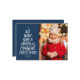 Vi önskar er en god och magisk jul! Det här helgdag-fotokortet har en handskriven stil-typsbehandling i trendig på en klassisk marin blå bakgrund. Julkortet har också ett foto på framsidan tillsammans med två foton på den samordnande marinen som också har en passande punkt och stjärna mönster. Den här roligten och utformningen av ett kort för festligt helgdag är underbar som ett kort för familjen, ett pars helgdag och mycket annat. Med semesterfoton, favoritminnen eller ett familjefoto på den här trefotodesignen. Hitta mer färg och matcha stilar i samlingen med Lea Delaveris Design. Finns även som hämtning av digitalt helgdag-kort.