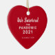 Visa humor med det här Vi Överlevt 2021 års Pandemic Red Heart Par Ceramic Ornament. Det här är en typografisk design med "vi överlevt 2021 års pandemi" i vit blockering. Utformningen skapades till ge lite skratt för alla par som inte skilde sig under karantänen Covid-19 och som låstes ihop med varandra. Personlig med namn i trendiget med handskriftsteckensnitt.