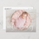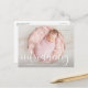 Vi presenterar Handskriven Skript Overlägg Foto Födelse Tillkännagivande | Fira och presentera din nya lilla glädje med detta anpassningsbara foto födelse tillkännagivande. Det har handskriven skript overlägg och röda bläck damast mönster.