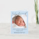 Ett enkelt "pastellblått" kort för pojke-förlossning. Framsidan har ditt nyfödda foto, fullt, namn, ankomstdatum och födelsestatus och "Introducing" skrivet i en snyggt som slutar med en hjärtblomning. På kortets insida kan du lägga till tre ytterligare foton och ett tack för personligen eller annat meddelande, med plats för en handskriven anteckning på den lämnat.