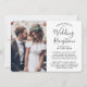 Bjud in familj och vänner till en enkelt elegant efter-flytt-fest med denna stilrena moderna "vi gifte oss i hemlighet" 4-foto-kollage-inbjudan. All text är enkel att anpassa för alla firanden efter vigseln, inklusive 1-årsfirande, förnyelse av löften, uppföljningsbröllop, cocktailparty eller middag. Anpassa den med dina egna detaljer, som datum för äktenskapet, dresscode, rsvp, webbplats, etc. (TIP: Ett enkelt sätt att centrera ett foto exakt som du vill är att beskära det innan du laddar upp det till Zazzles webbplats.) Den moderna minimalistiska svart-vita designen har fyra bilder av det nygifta paret, trendig handskriven kalligrafi och chic skrivmaskins-typografi. Oavsett om ni gifte er i hemlighet på grund av covid-pandemin eller valde en mindre, mer intim vigsel, kan festen