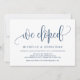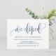 Denna moderna kalligrafiska designtemainbjudningskort (vi rymde) är perfekt för er bröllopsfirande/annonsfest. Lägg till era detaljer i matchande marinblå typsnitt/bokstäver.